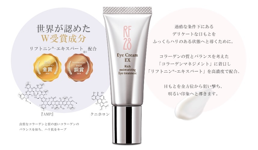 RF28アイクリームEXは、皮膚が薄くメイク落としの際の摩擦などでダメージを受けやすいとされている、目元をケアできるアイクリームです。