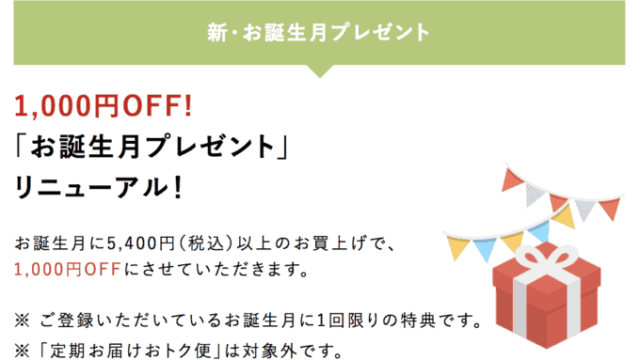※ ご登録いただいているお誕生月に1回限りの特典です。