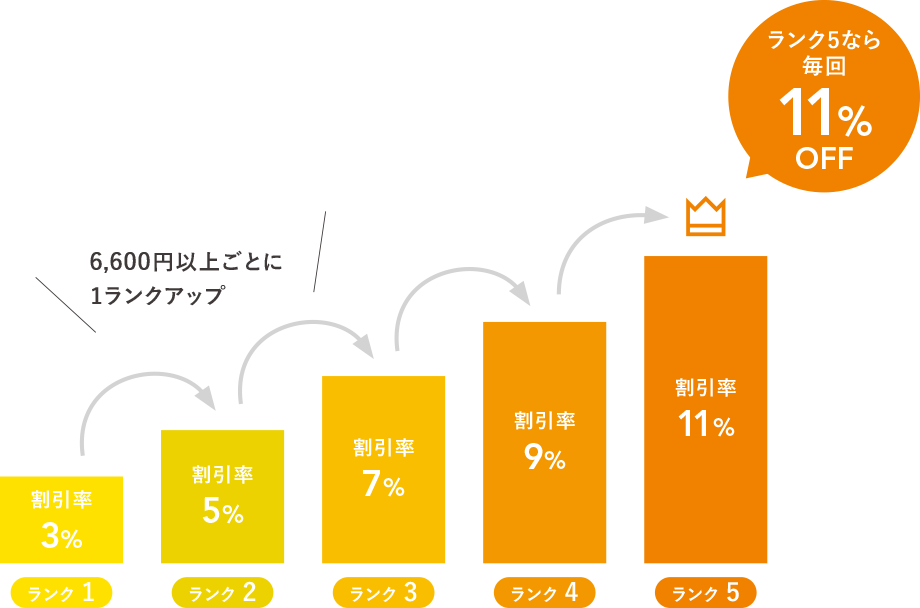 会員ランクに応じて、最大11%OFFキャンペーンを開催しています。